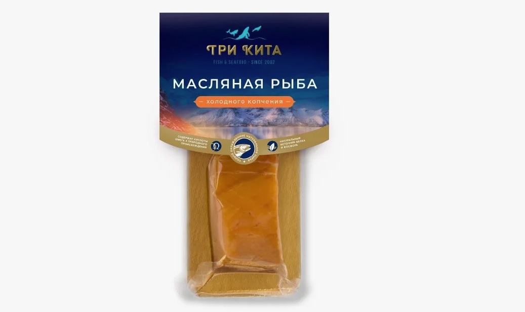 Масляная рыба кусок "Три Кита" холодного копчения в/у охл 200 гр