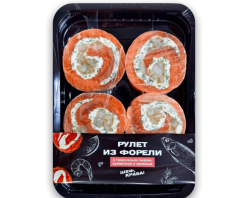 Рулет из форели с творожным сыром и белыми грибами 450 гр