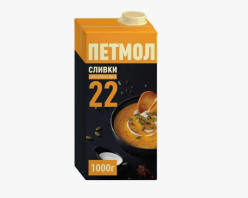 Сливки 22% "Петмол" БЗМЖ 1 л*12